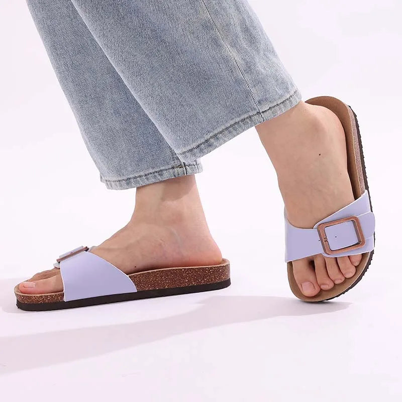 Evshine 2024 Summer Flat Slippers For Women New Design Women Clogs Women's Mules Fashion Cork Clogs Slippers Adjustable Buckle