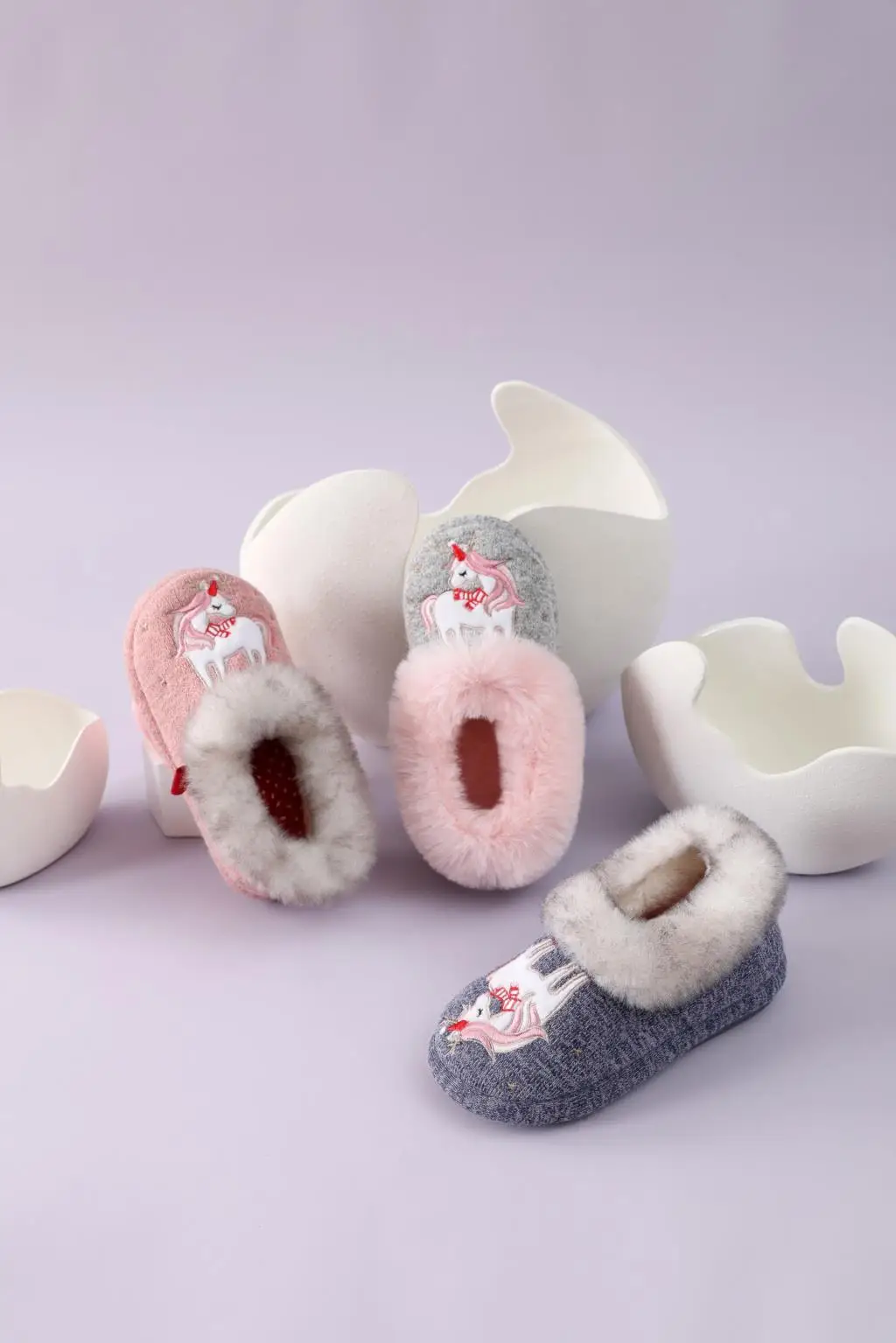 Crestar Girls Boys Cute Plush Cotton Shoes Winter Indoor Comfortable Baby Fuzzy House Slipper New Children Fur Furry Slippers